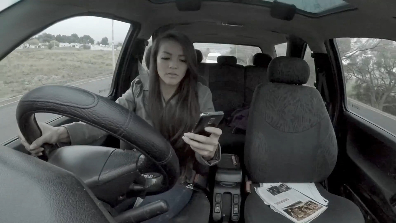Then it asks viewers, “You can’t even text and walk, so why do you text and drive?” as it depicts a young driver checking her phone before getting T-boned and knocked unconscious.
