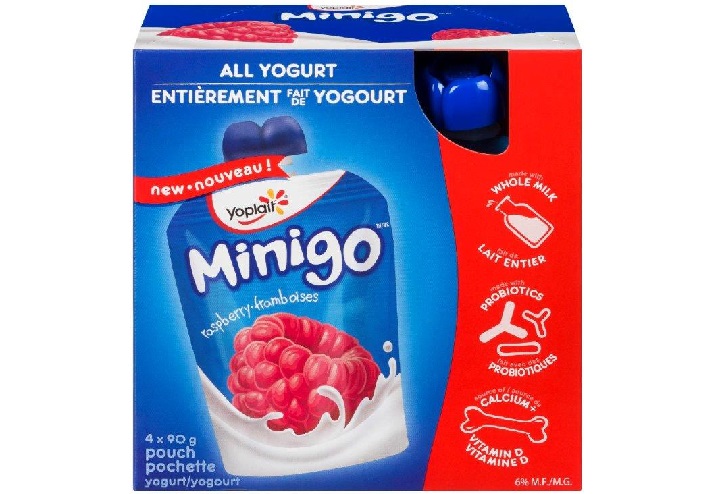 - Yoplait Minigo raspberry yogurt, sold in 4 x 90 gram packages