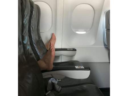 Speaking with People magazine, the 30 year old said she was on a JetBlue flight from Long Beach to San Francisco, Calif., when she first noticed the feet after someone collapsed the armrests.