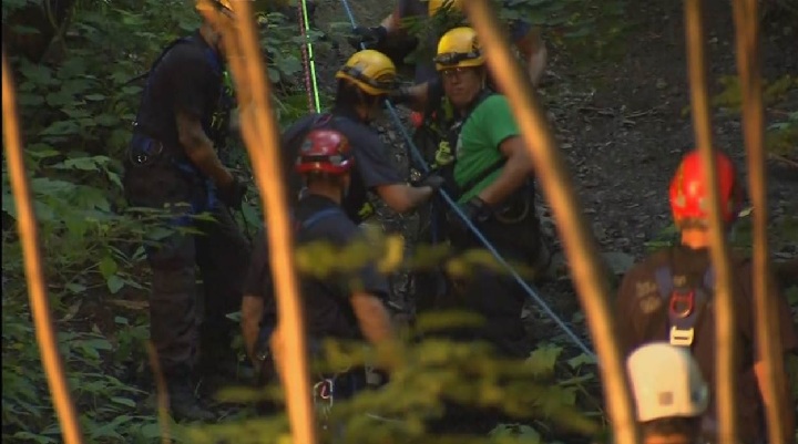 Firefighters were called to rescue a man in his 30s who fell down a steep embankment while walking on Mount Royal early Sunday morning.Sunday, July 23, 2017. Courtesy TVA
