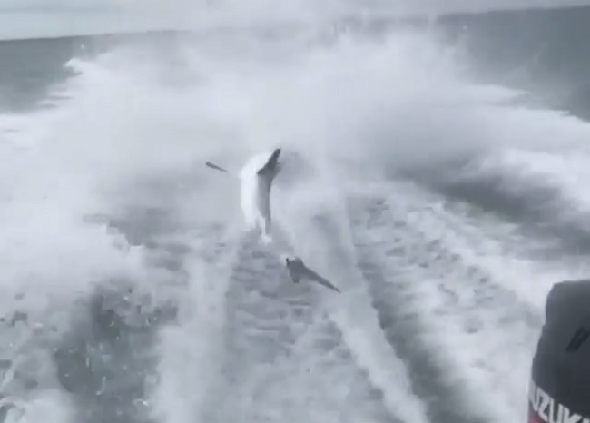 One of the men in the video is the driver of the boat, who looks back at the shark as he controls the speeding vessel. It’s unclear who filmed the video, which has been widely shared — and condemned — on social media.