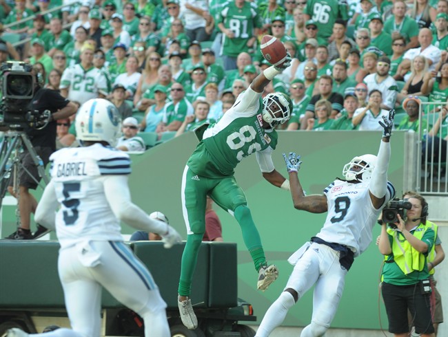Bakari Grant was the second Riders receiver to eclipse the 100-yard mark on Saturday — five catches for 115 yards. Naaman Roosevelt also secured a touchdown catch.