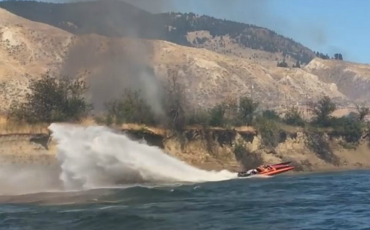 “Coyne decided to make a pass with our jet boat because it has a big rooster tail on the back and he actually hit the bank with the jet stream and put out some of the flame” Hunt told CKNW.