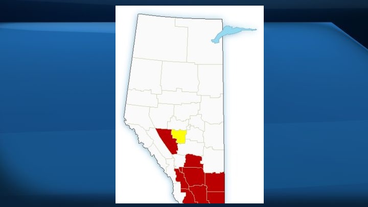 For a complete list of areas under a weather watch or warning in Alberta, click here.