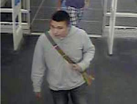 Police describe the suspect as being approximately 25 years old, 5’10” tall and clean-shaven. He was wearing dark blue jeans and a long grey hoodie.