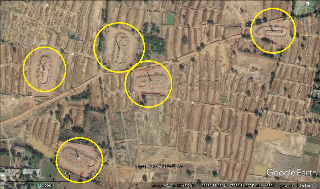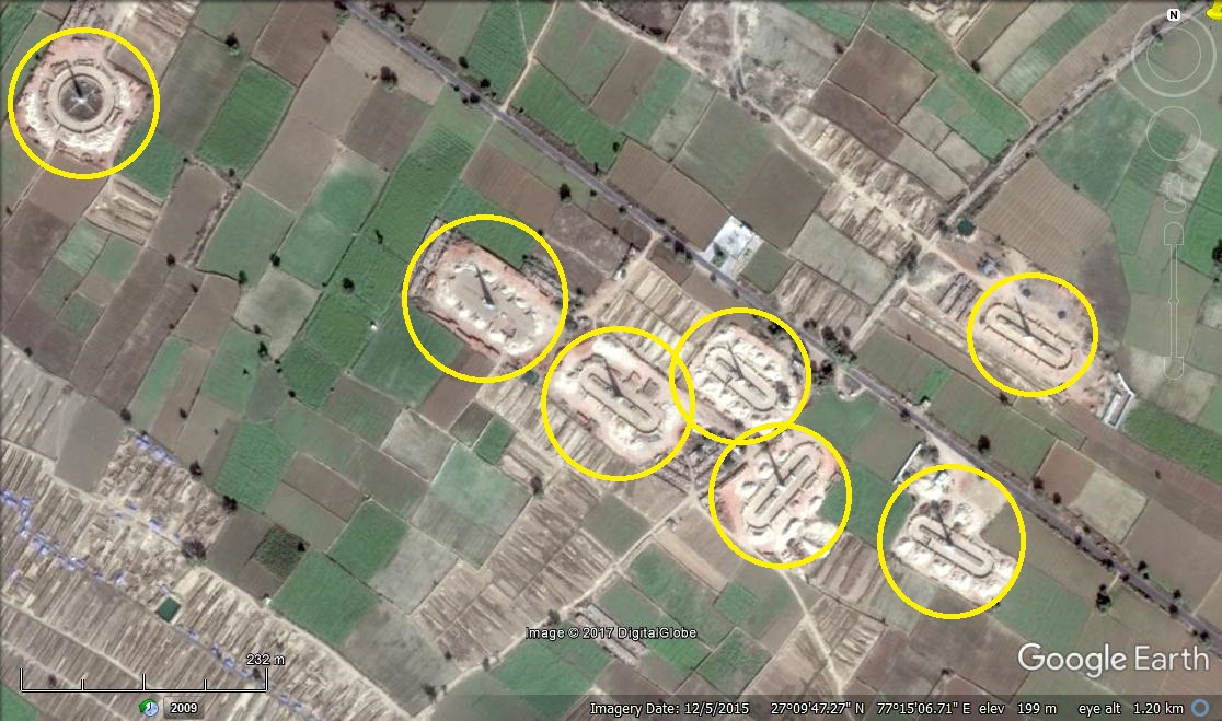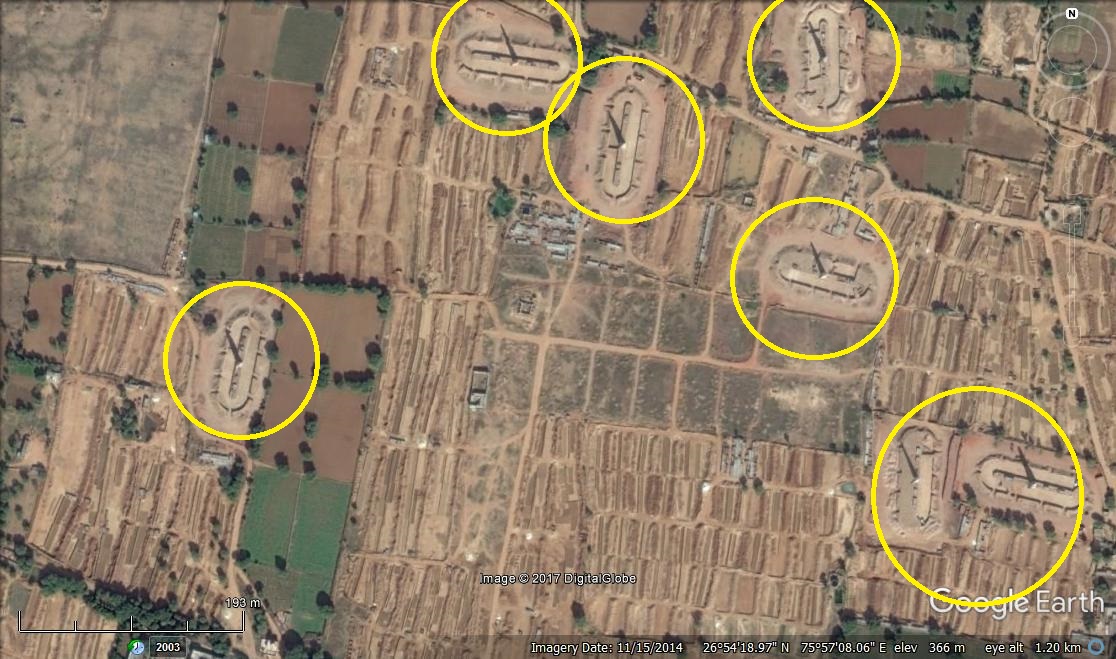 SCROLL THROUGH THE GALLERY BELOW TO SEE BRICK KILNS CIRCLED IN THE SATELLITE IMAGES
