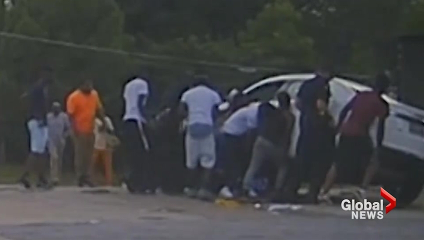 Police released dashcam video of the incident which shows the bystanders teaming with officers to rescue the man.