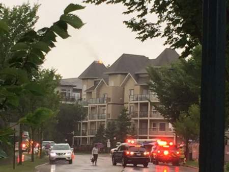 Residents of a south-side Edmonton condo building were forced from their homes Saturday afternoon after lightning struck the building.