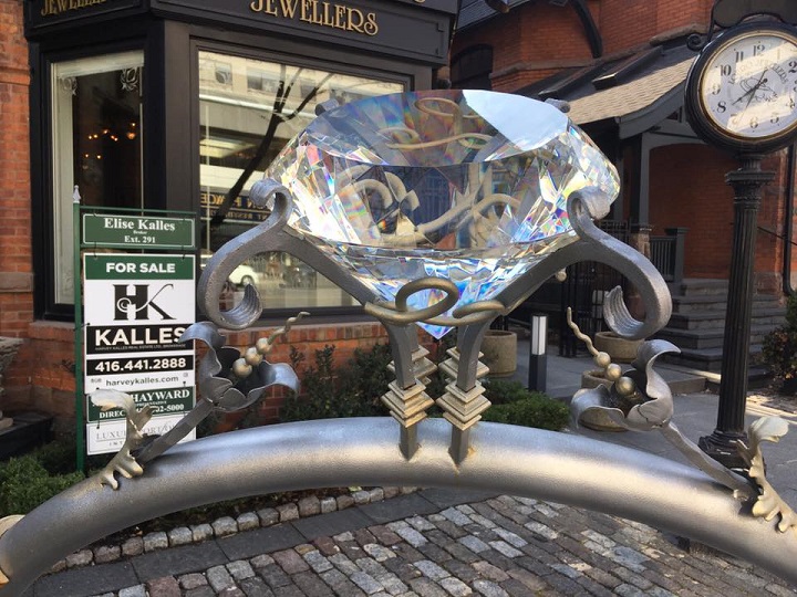 A large diamond-shaped crystal belonging to an engagement ring sculpture was stolen from out front of a Yorkville jewelry shop early Saturday, the store’s owners say.