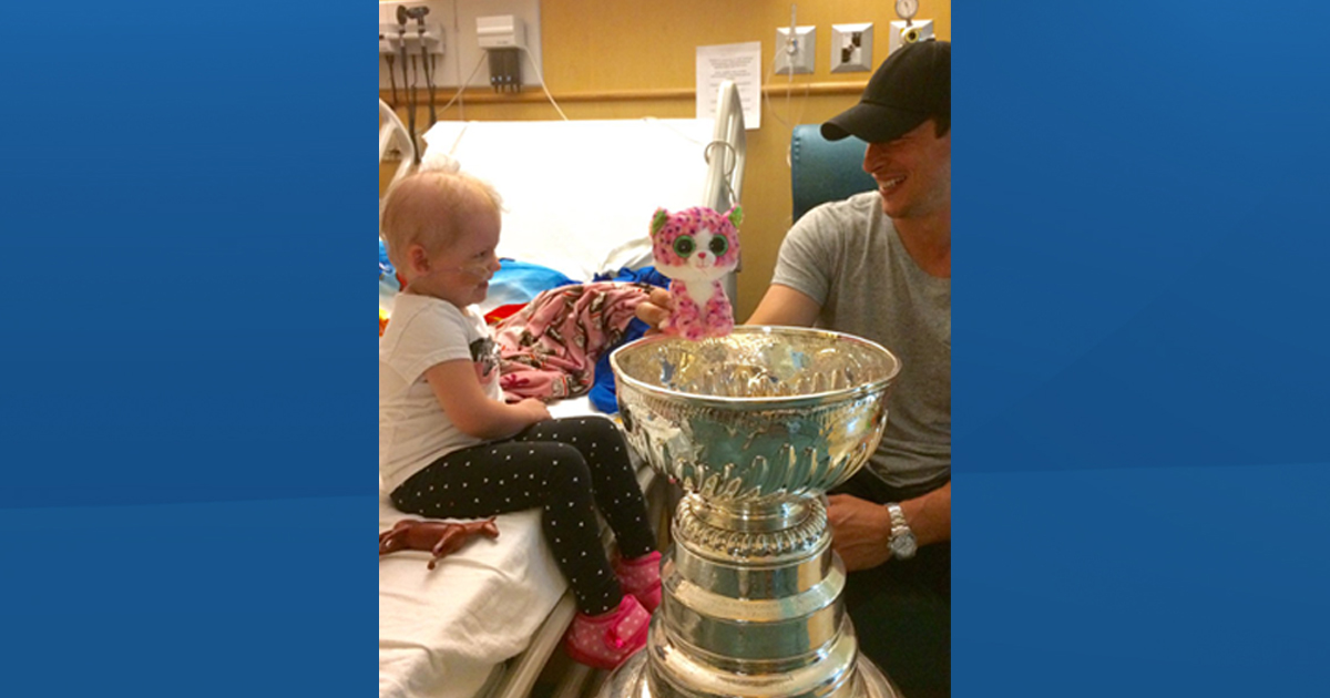 Another tweet sent out by Pritchard showed the hockey player and the Cup with kids at a local children’s hospital, complete with Crosby placing a furry pink stuffed kitten on top.