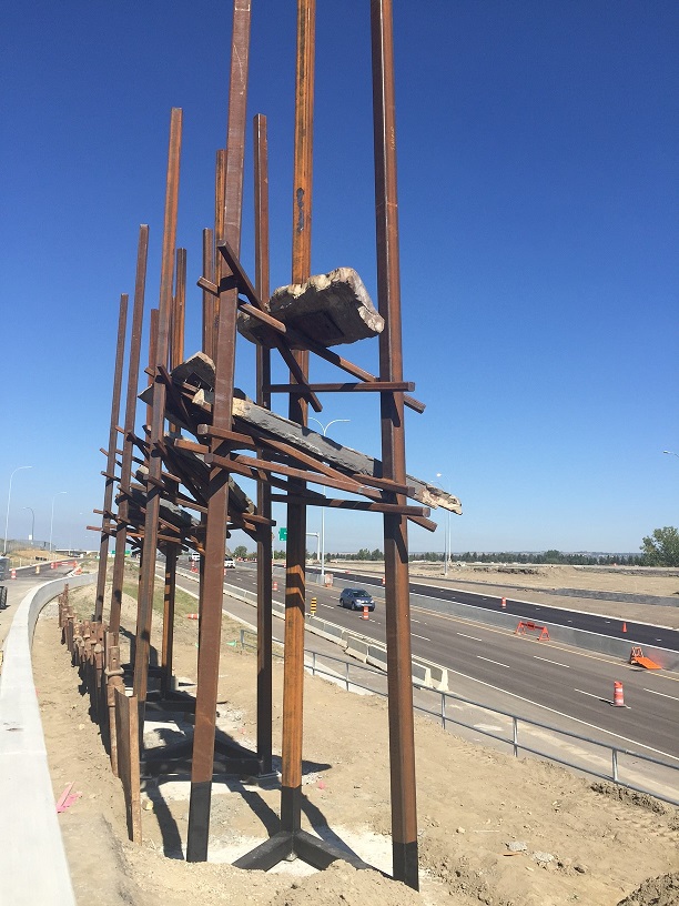 One per cent of capital budget for every infrastructure project is dedicated to public art in Calgary. The cost of the interchange project is $71 million and both the Bowfort Towers and second half of the project came in under budget at $500,000. The fabricator on the project was Metal–Fab Industries, a local company.