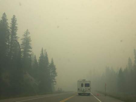 DriveBC said the smoke may cause issues between Radium Hot Springs and Highway 1 at Castle Junction. Travel was recommended between 7 a.m. and 2 p.m. MT.