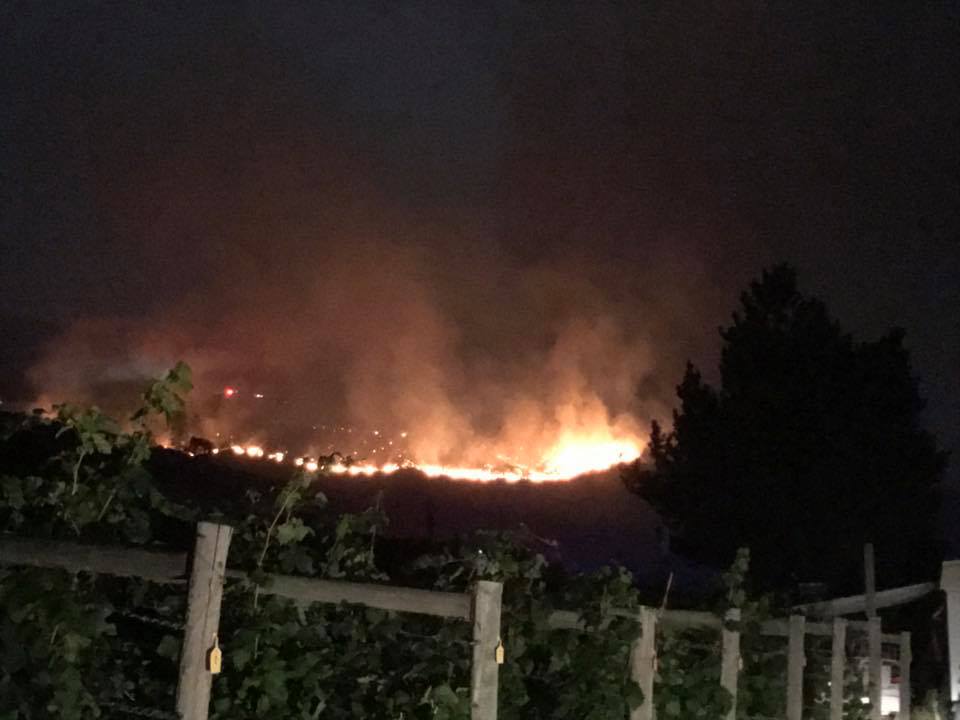 B.C. Wildfire Service said the grass fire came within 30 meters of the nearest vineyard.
