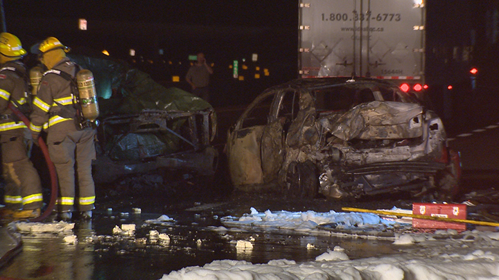 Around 10 p.m. on Aug. 3, police, paramedics and fire crews responded to a multi-vehicle crash on the eastbound lanes of the highway. Police say a tractor trailer collided with two other vehicles which resulted in a fire.