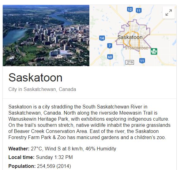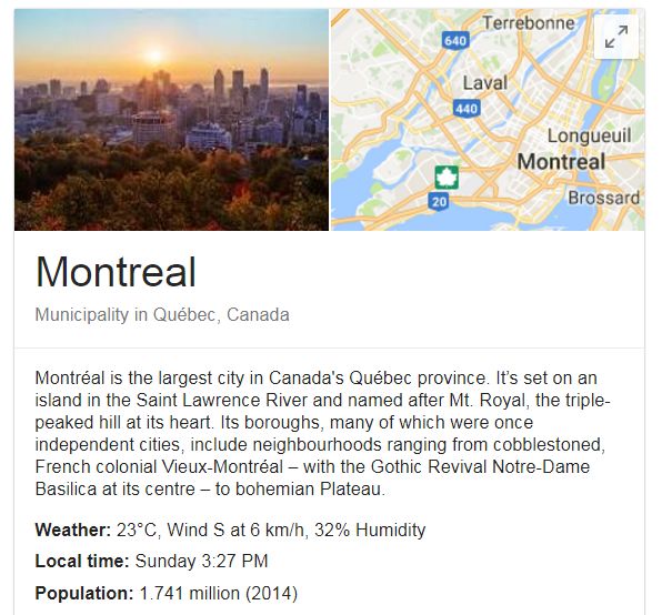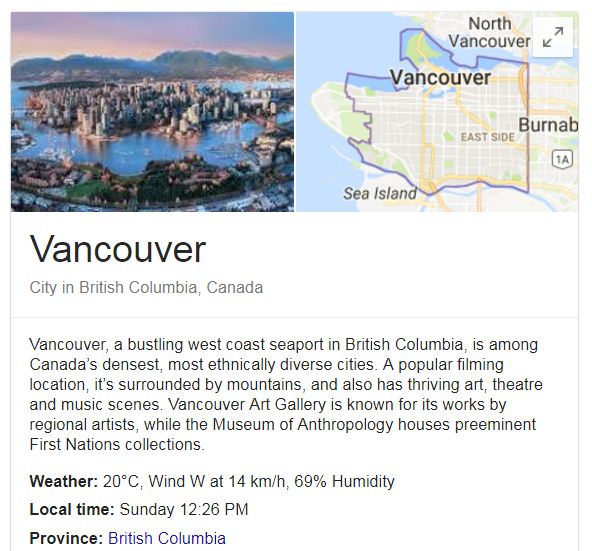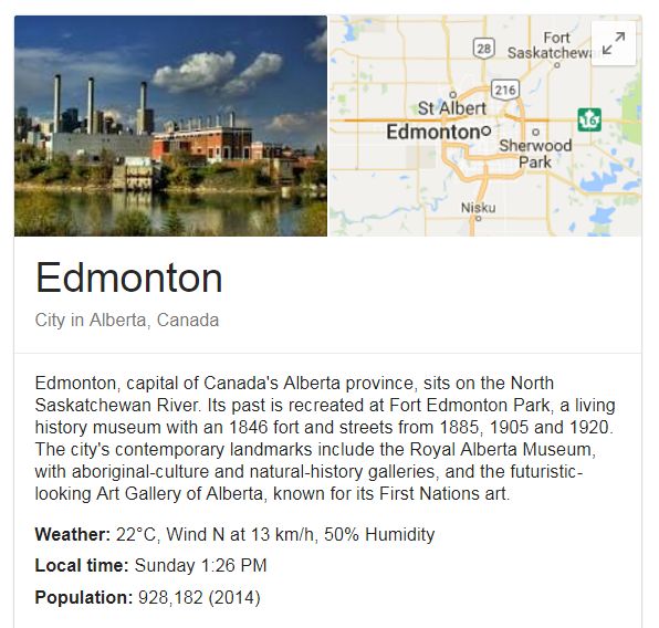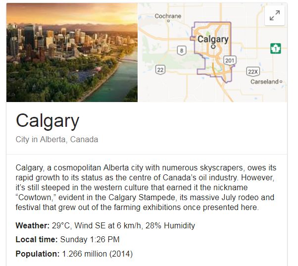 When you do a Google search for any city, a knowledge panel comes up on the right side of your screen. It contains an image that is selected by a Google algorithm, a map and the city’s Wikipedia page.