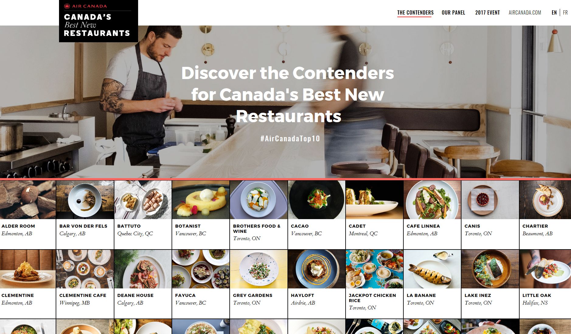 The annual Top 10 ranking will be unveiled at a gala event in Toronto and on CanadasBestNewRestaurants.com on Oct. 19, 2017. The final 10 will also be showcased in the November issue of Air Canada enRoute magazine.