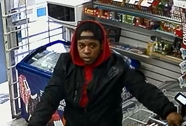 According to police, the suspect is described as a black man, approximately 30 to 40 years old, five-foot-seven with a stocky build. He was wearing a black jacket over a red hoodie, black track pants, black sneakers with white midsoles and a backwards black hat when the robbery occurred.