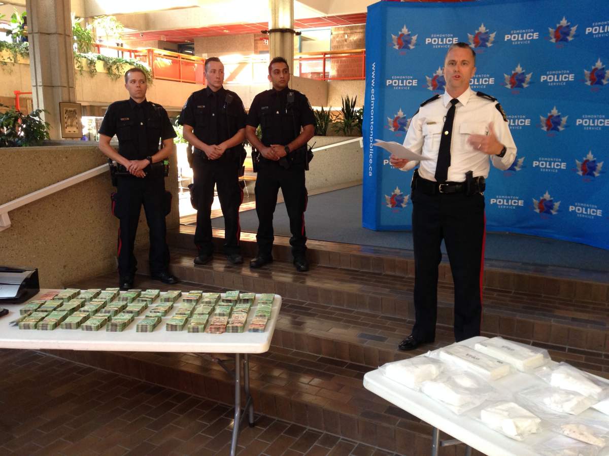 Watch below: Thousands of dollars of drugs and cash are off the streets after a bust by Edmonton police. Officers seized nearly four kilograms of cocaine, most of it hidden inside a compartment of a Jeep. Kim Smith has the details.