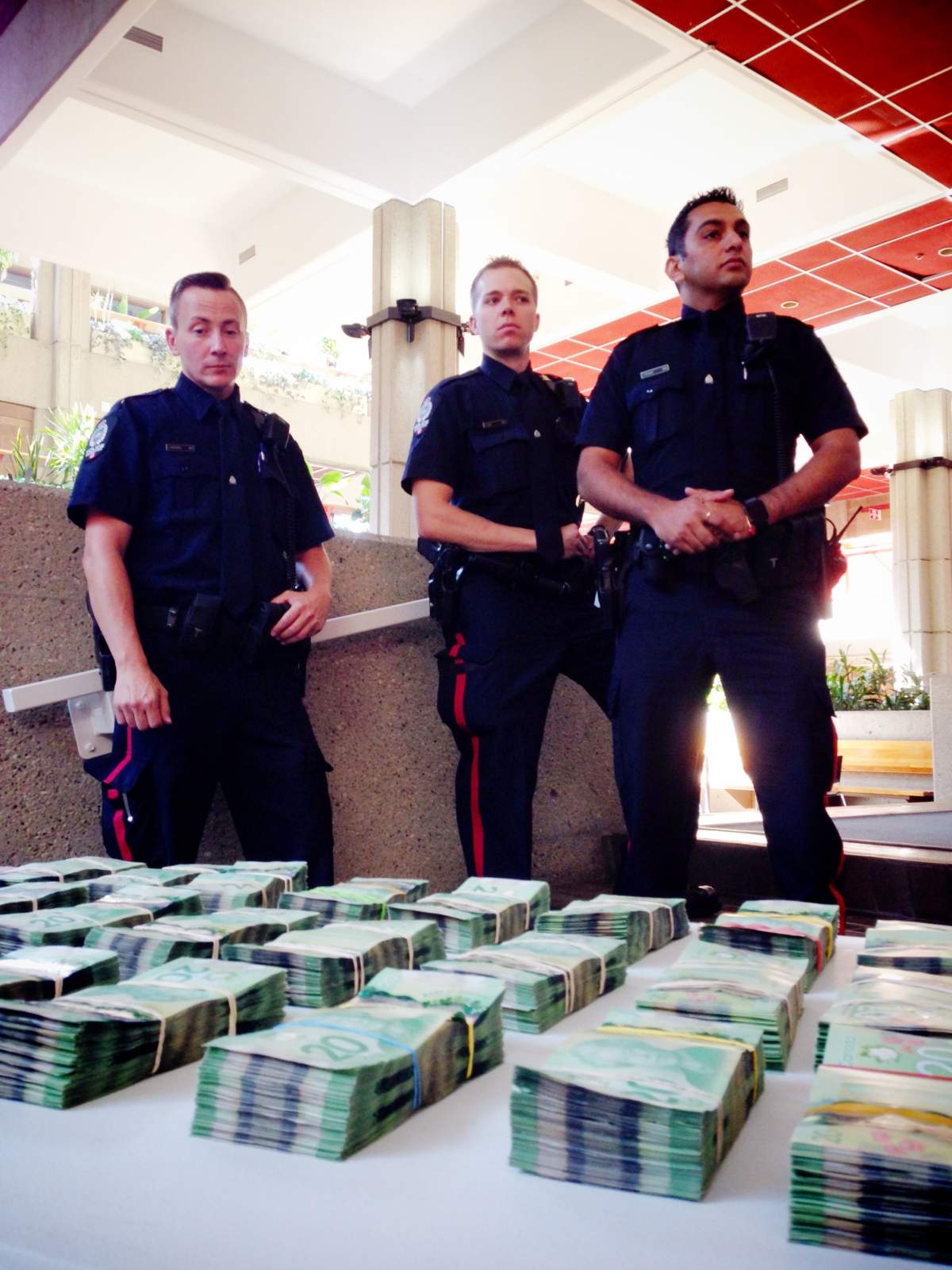Inside the home, police found drugs, cash and equipment, including $54,000 CAD, over 1,300 grams of cocaine, nearly 460 grams of meth, nearly 2,300 pills (which police suspect could be oxycodone) and packing materials.