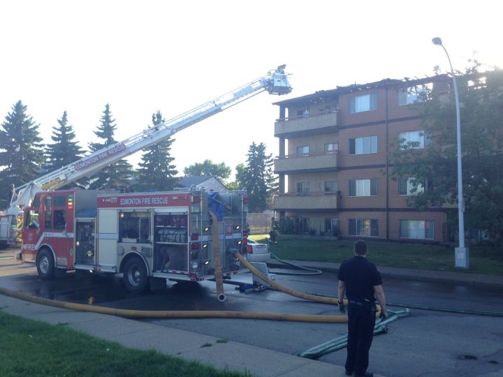 Edmonton Fire Rescue said crews arrived on scene four minutes after the 911 call, and the roof of the building was already engulfed in flames.