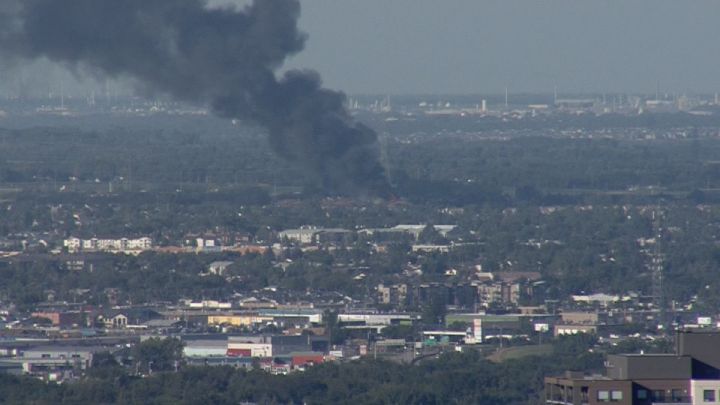 The fire could be seen as far away as the Skytracker camera, on top of Manulife Place downtown.