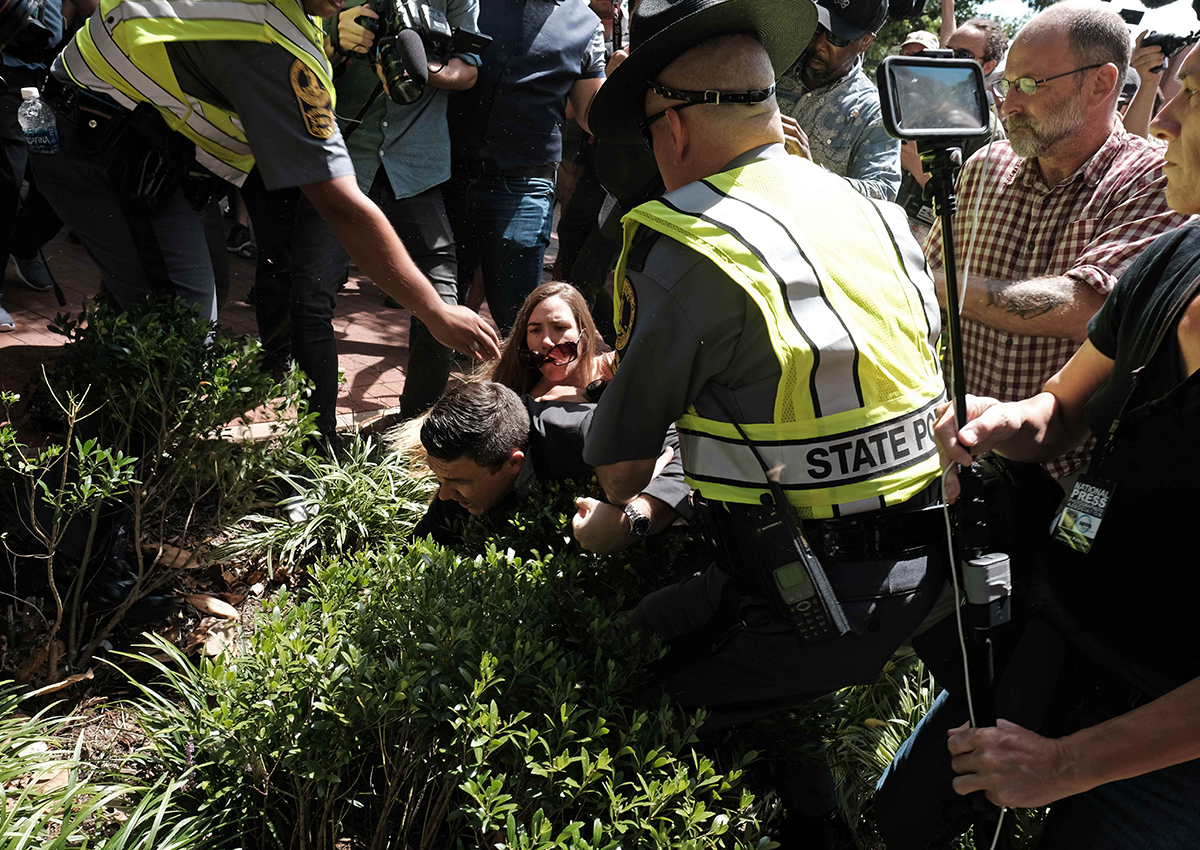 Kessler asked state troopers on the scene for help. Eventually they escorted him off. State police say troopers approached the area as the crowd got aggressive but made no arrests.