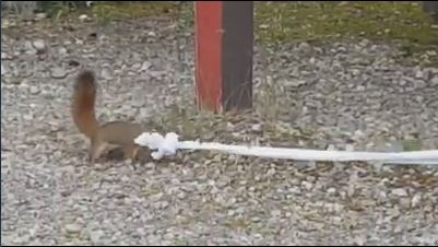 He’d spotted a little squirrel feverishly gathering toilet paper from a long string leading from the men’s washroom.