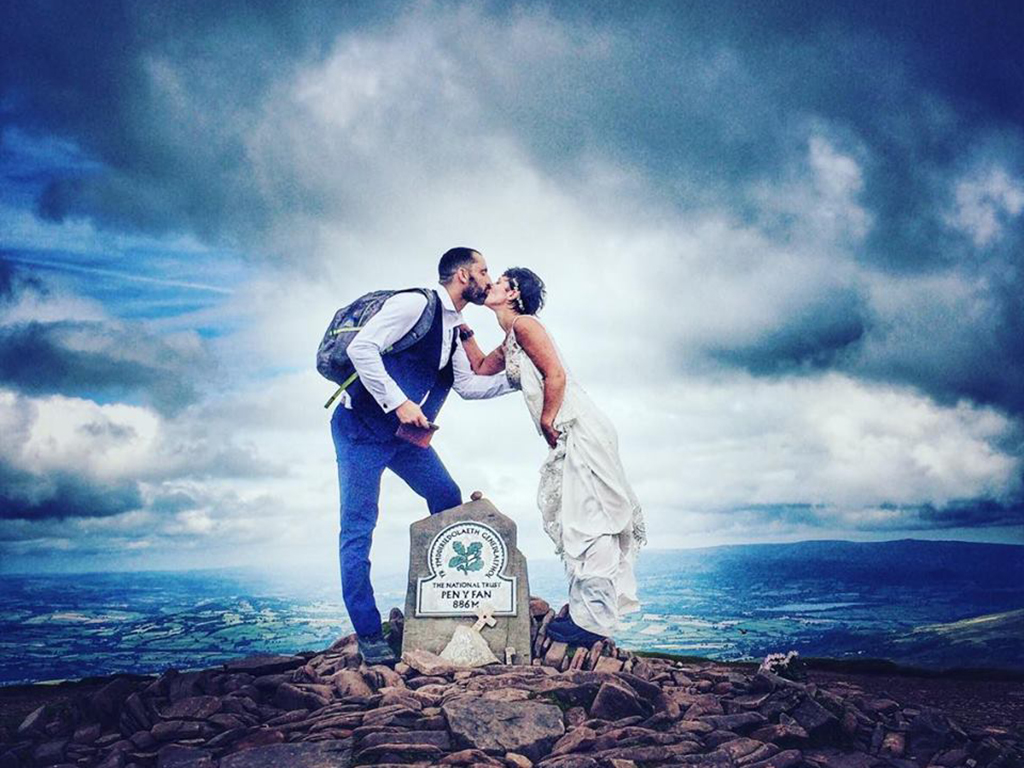 Osborne-Bowring and her husband, Matt, scaled some of the tallest mountains in Wales, including Mount Snowdon and Pen y Fan, Fan Brycheiniog and Waun Fach in the Black Mountains, and Mynydd Sygyn, Grib Ddu and Moel y Dyniewyd in Snowdonia National Park. Both were dressed in their wedding outfits for the climbs, only bolstered with proper hiking boots.