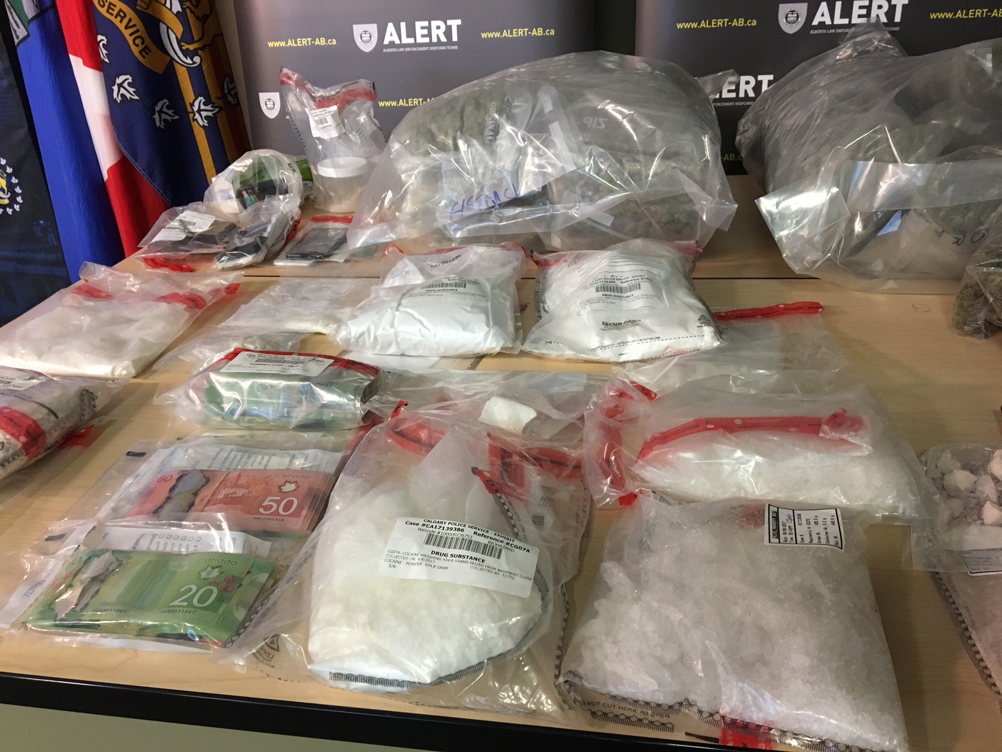 In a Tuesday media release, ALERT said the seizure was the result of a “short-term investigation into a suspected drug-trafficking group based in Calgary.” It said the Douglasdale home had also allegedly operated as a cocaine conversion lab.