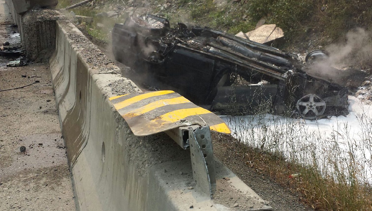 RCMP said a four door sedan had crashed in the westbound ditch and became fully engulfed in flames.