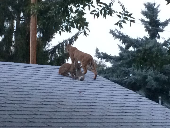 “It was pretty cool to watch the mom bring in her kill to the kittens, she jumped onto the garage from the ground with a rabbit in her mouth. It was amazing!”