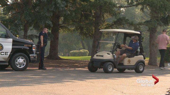 Police told Global News the animal was not acting aggressively, but the golf course was evacuated just after 10:30 a.m. as a precaution.