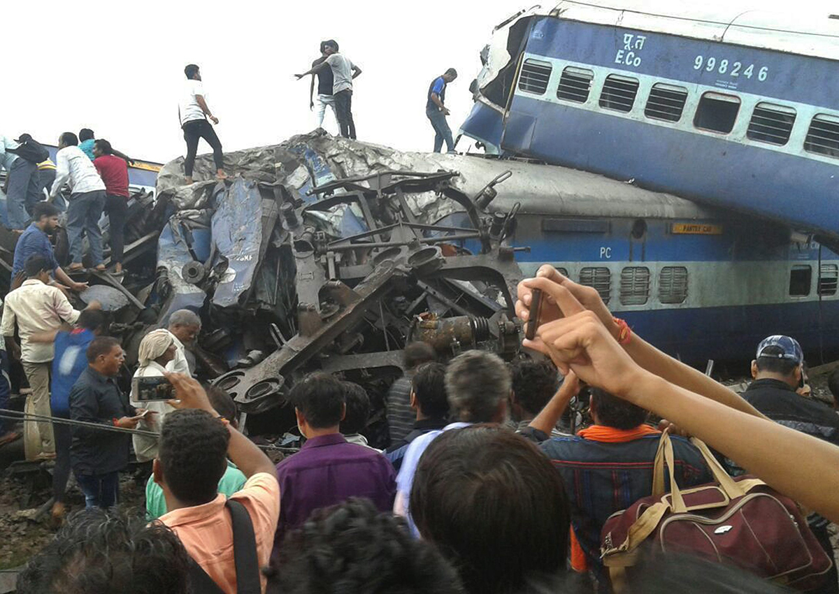 Railway police and local volunteers helped pull passengers out of the upturned coaches of the Kalinga-Utkal Express, which connects the Hindu holy city of Haridwar with the temple town of Puri, in the eastern state of Orissa.