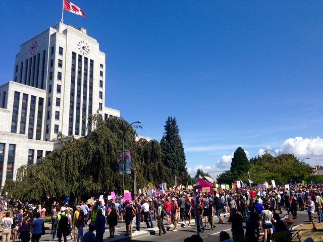 An estimated 4,000 people attended a counter-rally at City Hall that was organized by an ad-hoc group calling itself Stand Up to Racism Metro Van.