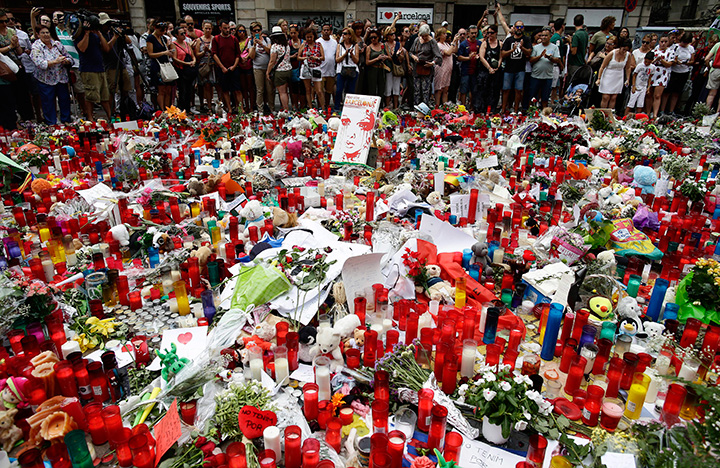 On Monday, mourners were still weeping and hugging each other as they visited the main memorial site of the Barcelona attack. Crowds of people continued to lay flowers, candles and heart-shaped balloons at the top of Las Ramblas and at other smaller tributes where the van created such carnage.