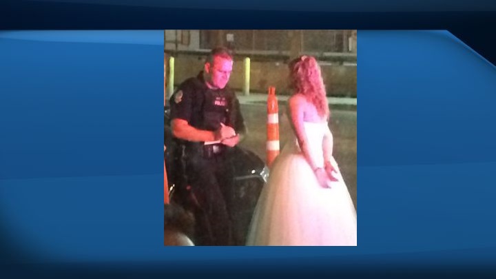WATCH: Global Calgary’s Scott Fee, Amber Schinkel and Jordan Witzel discussed handcuffs and rowdy weddings after learning a bride and groom in Edmonton had become involved in a bar brawl.