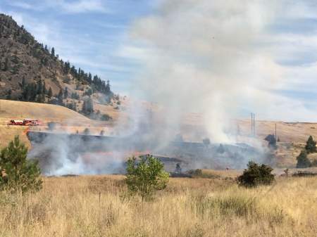 The call came in shortly after 1 p.m. The fire grew to just over two hectares before crews got a handle on it.