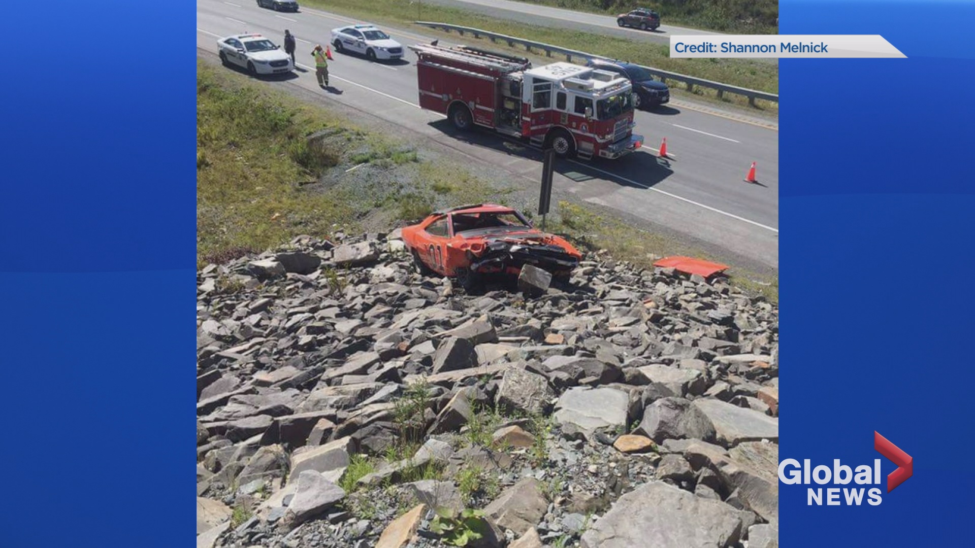 A collision on Nova Scotia Highway 102 on Monday had the province’s residents wondering if the Dukes of Hazzard had paid a visit to the Maritimes.