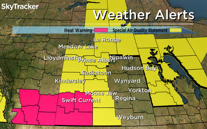 Many areas of Saskatchewan are currently under a special air quality statement due to smoke from wildfires, and a heat warning is in place for the southwest corner of the province.