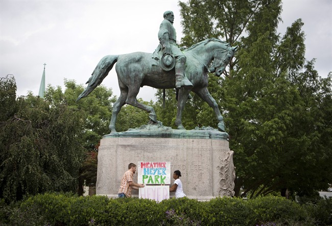 The controversy over the statue sparked the Aug. 12 “Unite the Right” rally that descended into violent chaos. Charlottesville has since shrouded the monument with a black tarp as a symbol of mourning for the woman who was killed.
