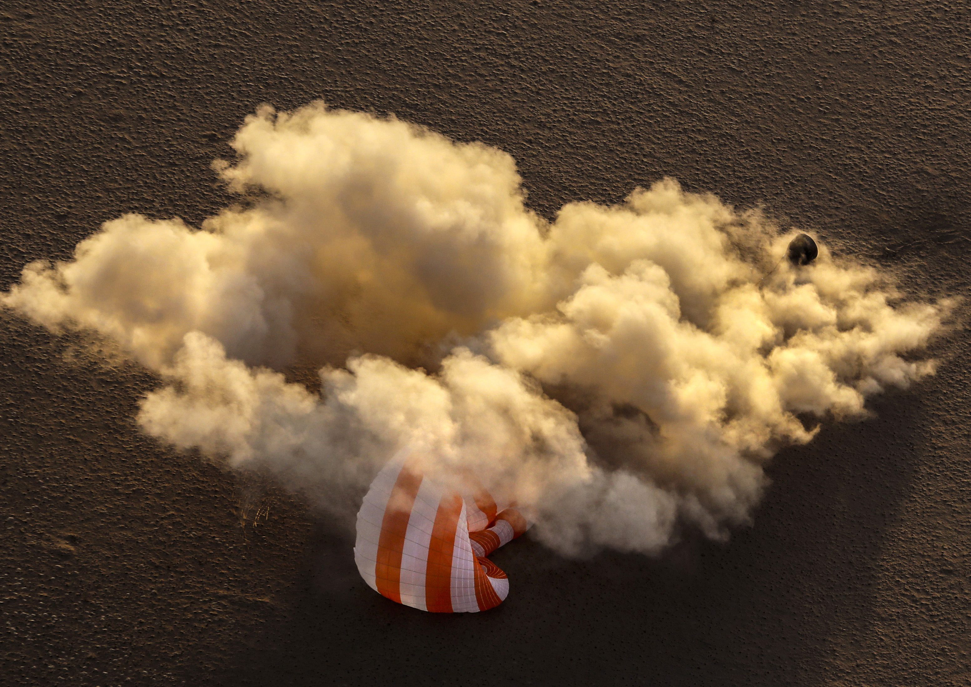 Returning cosmonaut Fyodor Yurchikhin logged even more time in space: 673 days over five missions. NASA astronaut Jack Fischer returned after 136 days aloft. The men flew up in April.