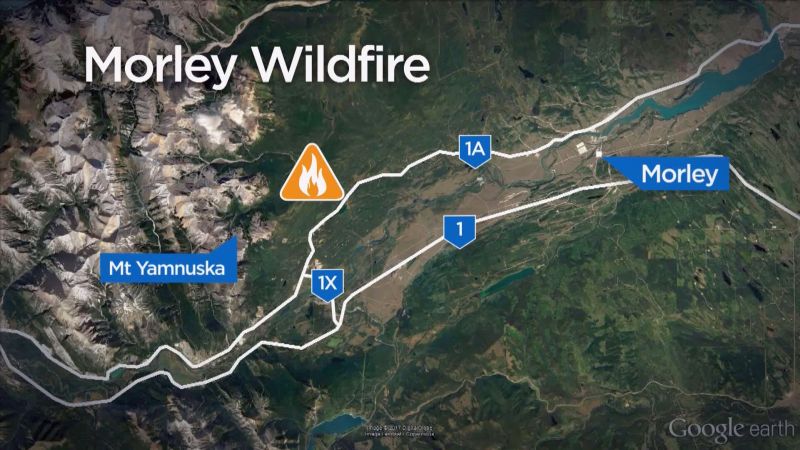 The fire reportedly began at about 6:30 p.m. on Tuesday at the base of Mount Yamnuska. A status map on the Government of Alberta’s website said the fire was burning out of control near Morley and was about three hectares in size.