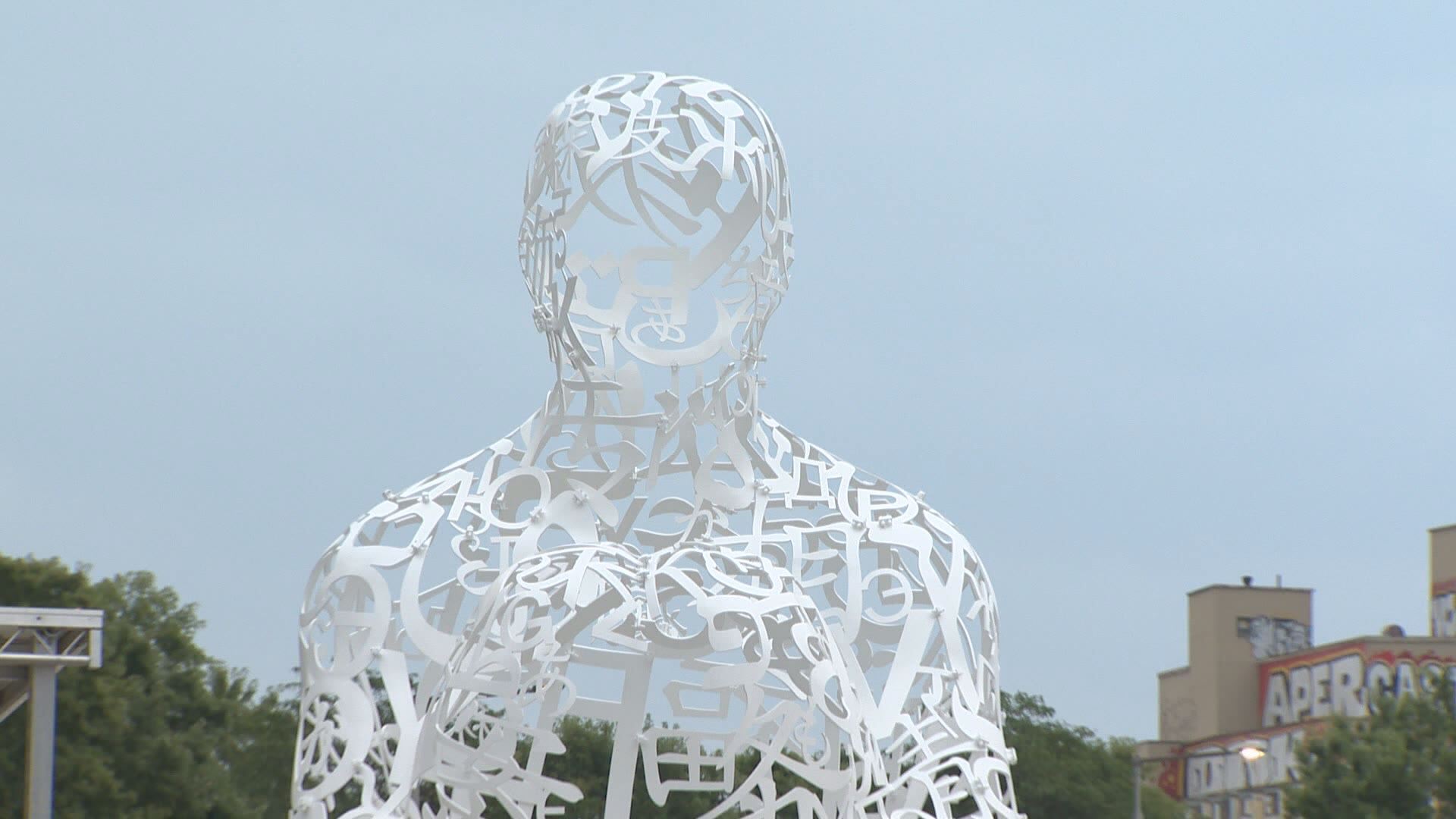 It’s a 10 metre-tall, stainless steel statue called ‘Source’ by well-known Spanish artist and sculptor Jaume Plensa.