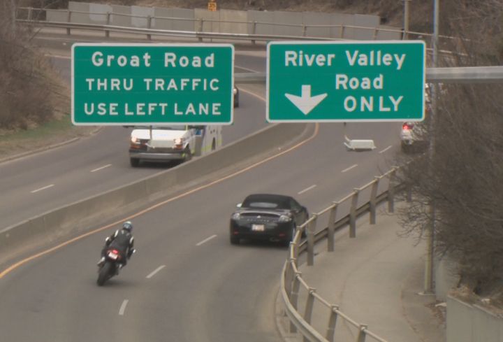 Groat Road is a 50 km/h zone from River Valley Road to 104 Avenue and a 60 km/h zone beyond that.