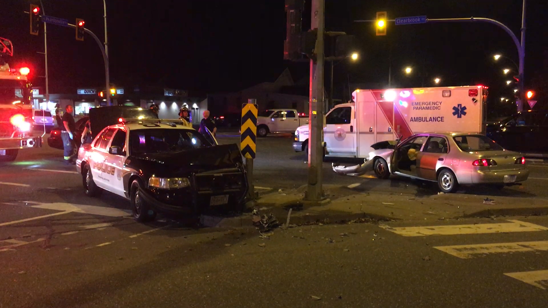 An Abbotsford Police cruiser and another vehicle collided just after 10 p.m. Sunday night, on Peardonville and Clearbrook Road.