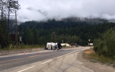 Traffic on the Trans-Canada Highway near Revelstoke is flowing again following a single vehicle crash involving a tractor-trailer.