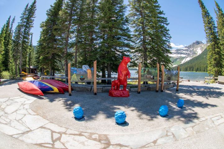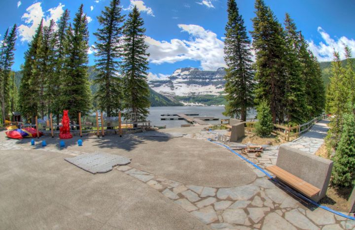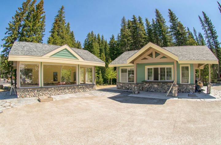 View photos below of the new visitor centre in the Cameron Lake area which is potentially threatened by the Kenow Mountain wildfire: