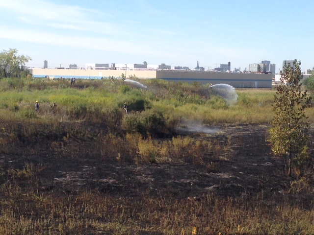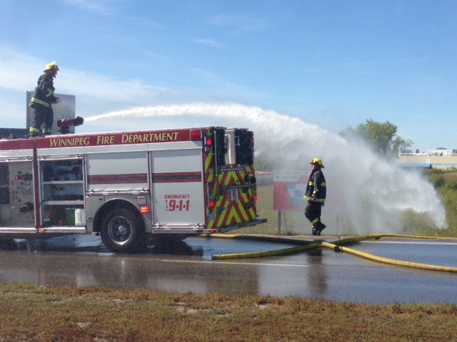 The grass fire is on the west side of Lagimodiere Boulevard near Warman Road.