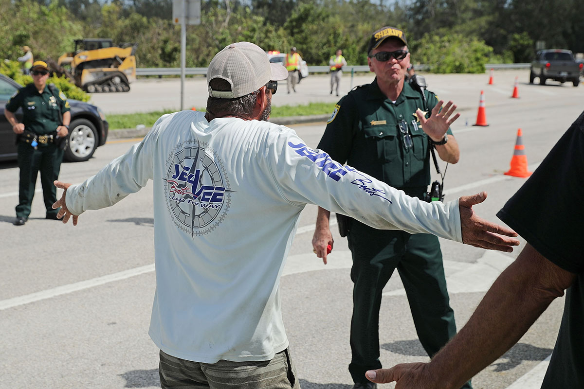 Some evacuees who had lingered at a police checkpoint in Florida City all day fumed, telling Zabaleta they needed to return to their houses to check on pets and clean up.