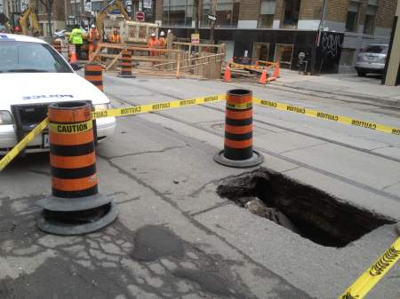 The sinkhole was discovered in front of 364 Adelaide Street between Spadina and Peter.